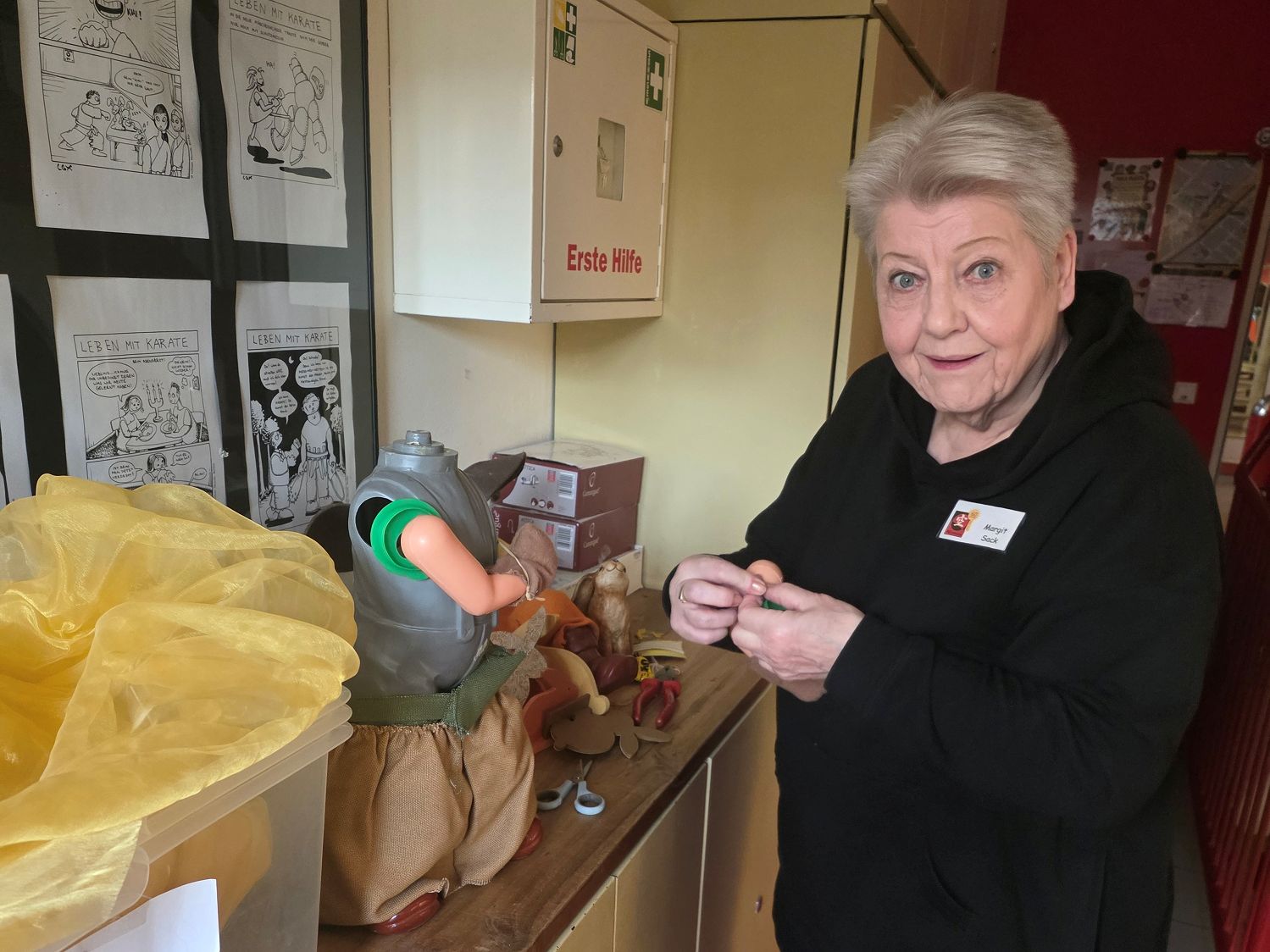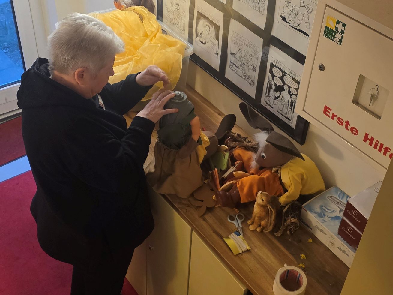 Margit hilft den Osterhasen auf die Beine.